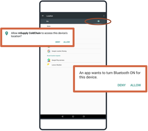 The first time you open mSupply ColdChain, it will guide you through enabling permissions and turning on required peripherals if they have not already been set correctly.