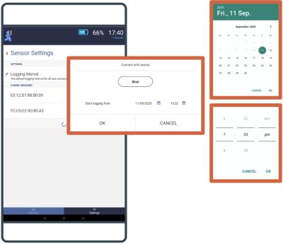 Start logging from: Using the date/time options, you can set the schedule for the first log. The sensor can be configured to start a maximum of 30 days from the link date. When you select OK, the application will link the sensor and move it to the Available Sensors section at the top of the Sensor Settings screen.