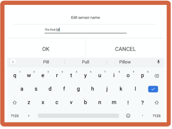 Sensor name: Double-tap on sensor name/row or select the > in the row to enter a new name for the sensor. This is the name that will appear on the Sensors tab. You should choose a name to make it easy to identify.