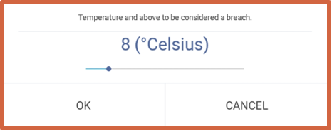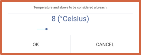Temperature: Using the slider, you can set the temperature outside of which will result in a breach: