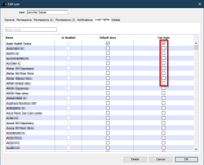 The dashboards can be configured such that data visibility is controlled according to the store login permissions of the user. This can be an efficient way of managing dashboards. Instead of having a large range of very similar dashboards where the only difference between them is the user / store who's data is visible, you can have just one dashboard, where different users will see data according to the stores which they have permission to log in to.
