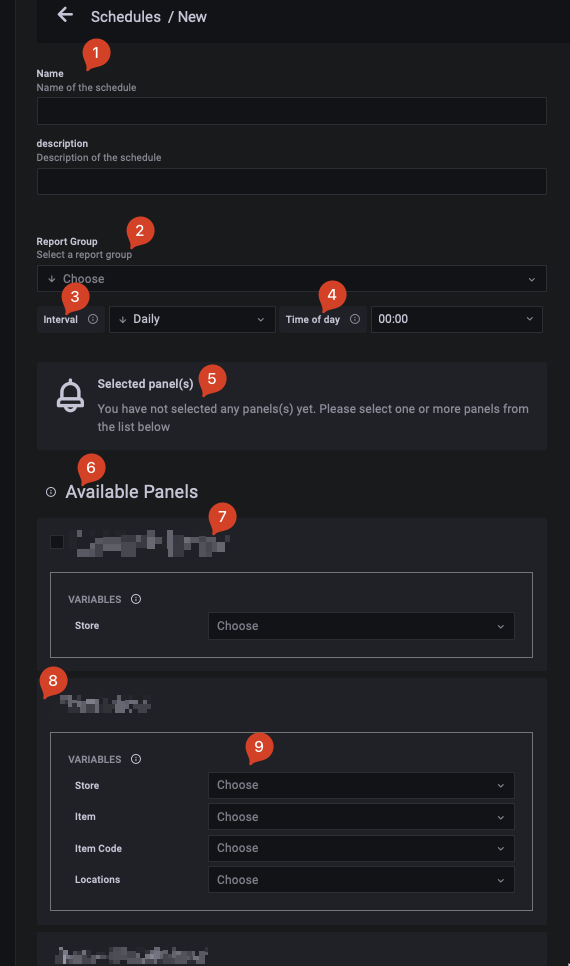 The list of Panels selected for this schedule, these are the panels from which data would extracted and sent to users in Report group.