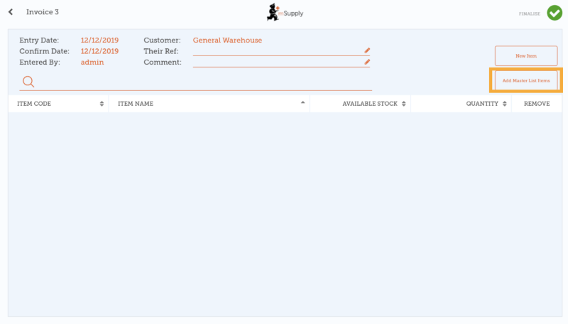 The items on the selected master list(s) will then automatically appear in the customer invoice.