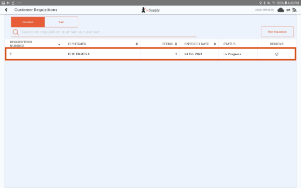 Tap on the Customer Requisitions button to review the Customer Requisitions.