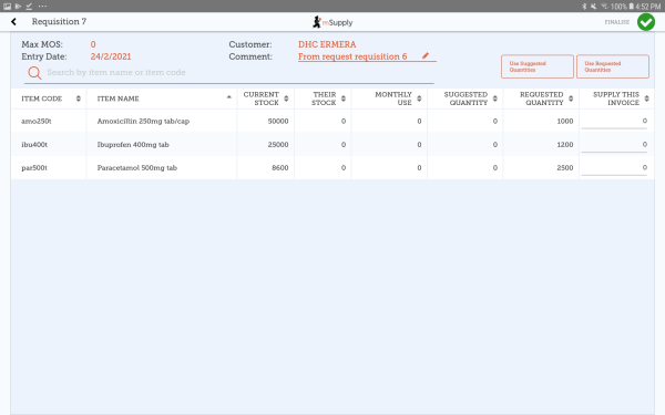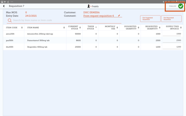 Finalising the requisition will also generate a finalised customer invoice.