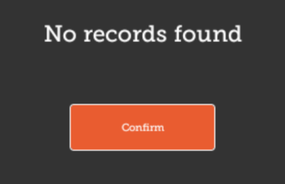 - If no patients match your criteria you will be shown the message below. Try making your search more general, for example search just for the first letter of their name