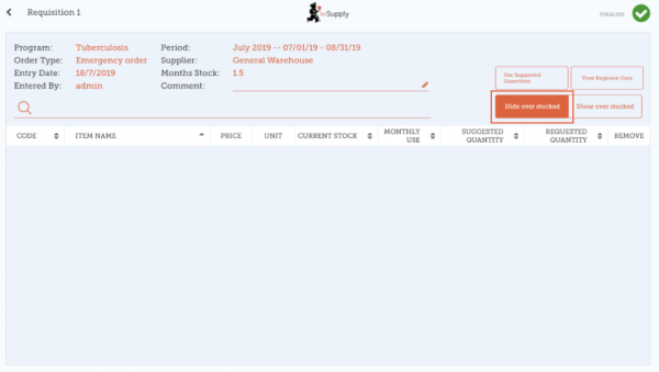 Click the Finalise button, then Confirm and your order will go to the supply store.