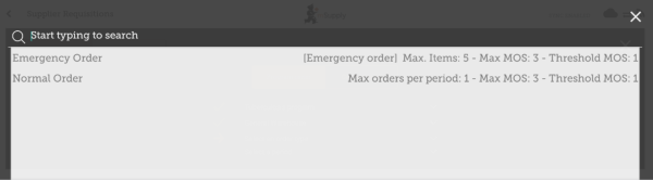 - Max items: maximum number of items allowed to be ordered for an emergency order (an alert will appear if the maximum number of items is exceeded)
