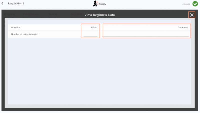 If regimen data is necessary for the requisition, enter values and comments then close the screen.