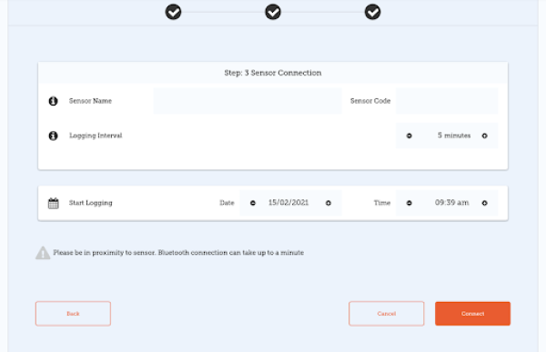 Tap Back if you wish to return to Step 1 and check that you have the correct sensor.