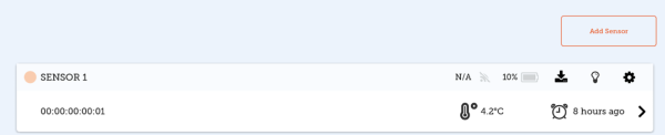 It is possible to download the temperature (breach) logs and sensor settings by clicking the ‘Download’ button in the header (on either the Vaccine home page or the Sensor Details page).