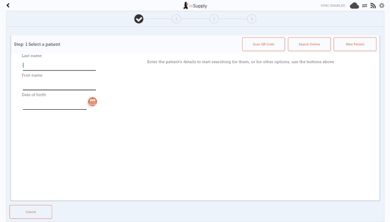 - If the patient was still not found after a search on the cloud server (or internet is not available), you will get a message indicating that no patient was found, and will arrive back at the manual entry page, where you can either enter details manually (as per above) or try another QR Code.