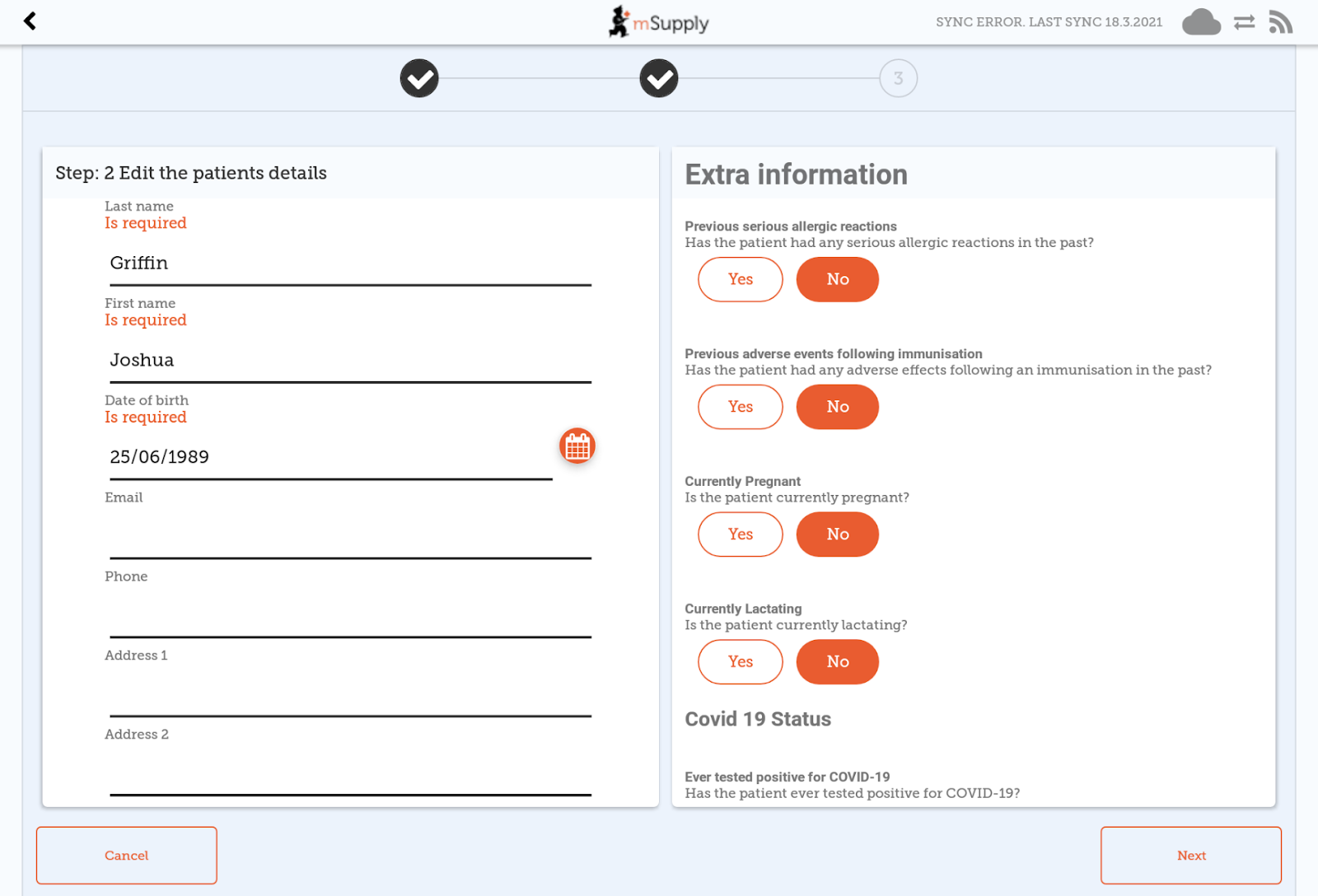 Step two: Add or edit patient information