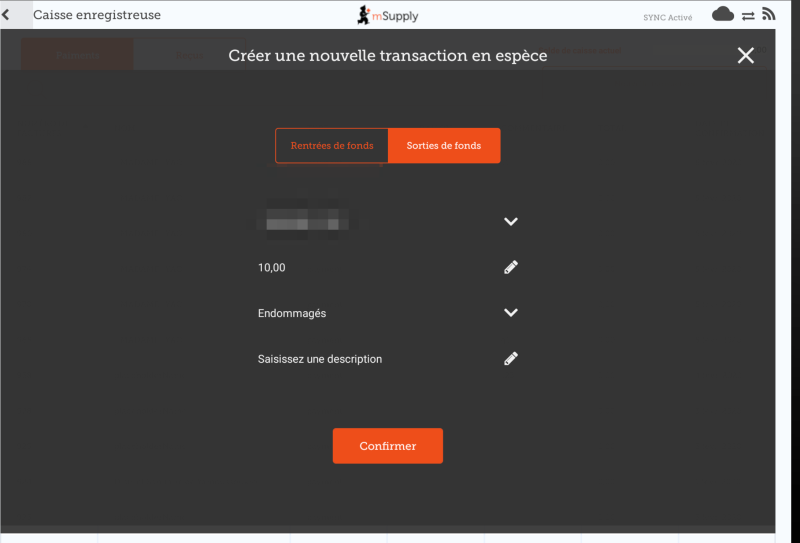 - Dès que vous avez choisi une raison, vous êtes en mesure de créer et sauvegarder cette transaction.