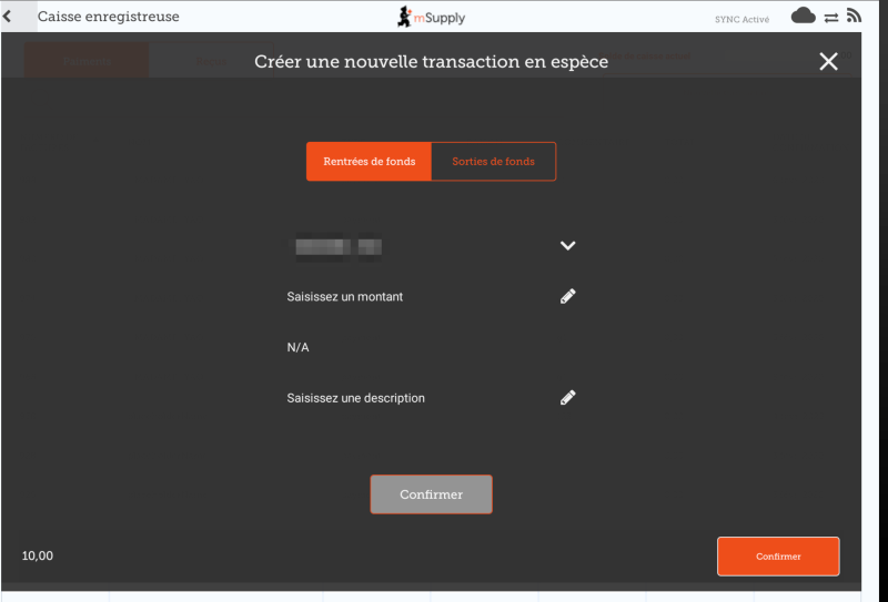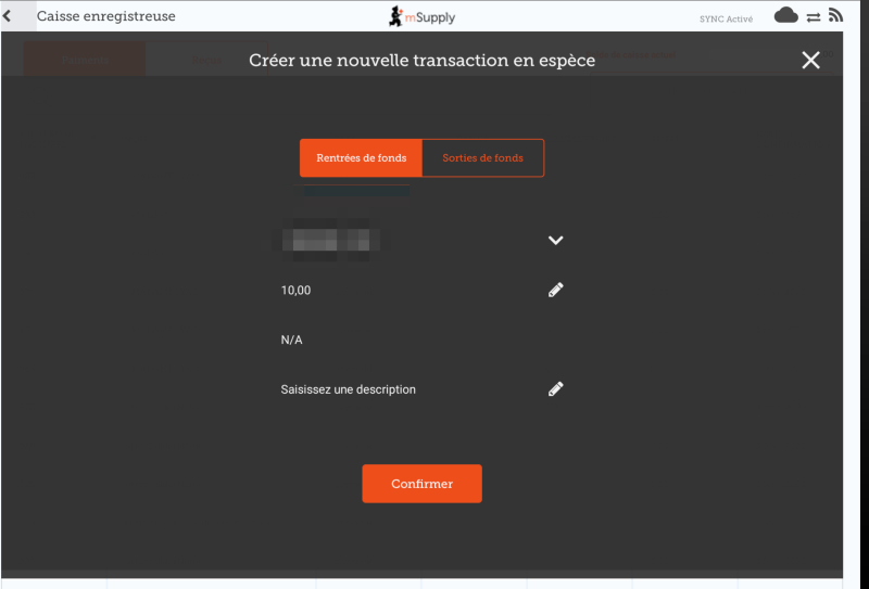 - Facultativement, vous pouvez saisir une description pour cette rentrée de fonds.