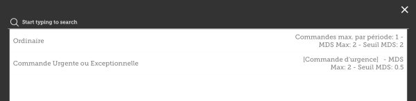 Lors de la sélection du type de commande, des informations supplémentaires sont affichées sur la droite: